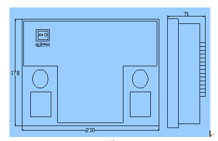 四、安裝方式 嵌入式安裝 外形尺寸:230mm×178mm×71 mm 開孔尺寸:220mm×165mm