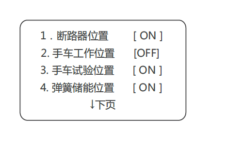 3.2.4“開關(guān)量狀態(tài)”子菜單界面顯示 裝置共有6路開入量,分別對應(yīng)B3-B8,如下圖所示: [ON] 表示對應(yīng)的開入量閉合[OFF] 為表示對應(yīng)開入量斷開 如果需要對開入量的名稱進行修改,可進入“開關(guān)量設(shè)置”菜單,進入菜單后輸入正確密碼即可修改,修改完成后需保存。