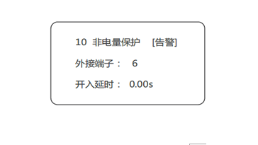B5-B8四路開入量可進行告警或跳閘關(guān)聯(lián)設(shè)置,具體設(shè)置可進入“保護定值”子菜單的10-13屏,界面如圖所示: 圖中各參數(shù)意義如下: 非電量保護: 保護名稱[告警]: 關(guān)聯(lián)的動作外接端子: 外部第6個開入量開入延時: 延時動作時間