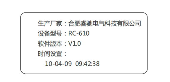 3.2.11 “一次測量數(shù)據(jù)”子菜單界面顯示 進入“一次測量數(shù)據(jù)”菜單項,界面如圖所示。 分別依次顯示一次測量電流(Ia,Ic)。生產(chǎn)廠家:合肥睿馳電氣科技有限公司設(shè)備型號:RC-610軟件版本:V1.0時間設(shè)置:10-04-09 09:42:38