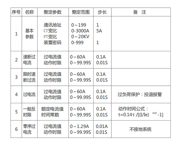 4.2.2一般反時限過電流 工作原理: 該保護主要用于變壓器和電機,當任一相電流大于額定工作電流時,保護啟動,經(jīng)Tfs延時后動作,其中Tfs為標準反時限曲線,公式為:T=0.14τ/[(I/Ie) 0.02 -1]t:保護動作時間; τ:反時限時間常數(shù)Ie:額定工作電流,為了使電機或變壓器有一定的過載能力,Ie設(shè)定可適當提高,如設(shè)為1.05倍的額定電流。I:回路實際電流值。