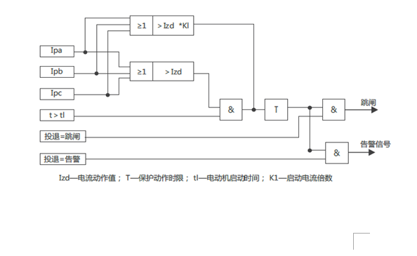 4.2.5 電機起動過程過電流保護 工作原理 電動機啟動時有較大的啟動電流,為了更可靠的保護電動機,特設(shè)了參數(shù)1(啟動時間)和參數(shù)2(啟動中的上調(diào)倍數(shù))用來躲過電動機的正常啟動電流,電動機啟動時,參數(shù)1(啟動時間)計時開始,啟動時間內(nèi)的保護電流等于整定電流值乘以參數(shù)2(啟動中的上調(diào)倍數(shù)),超過啟動時間后自動恢復(fù)到定時限過流保護(I >);這樣,既可有效防止啟動過程中因啟動電流過大引起的誤動作,同時還能保證正常運行中保護有較高的靈敏度。電動機啟動超過啟動時間后任一相電流沒有超過整定電流值為正常啟動。